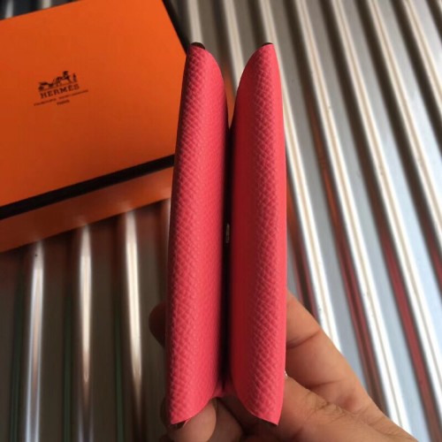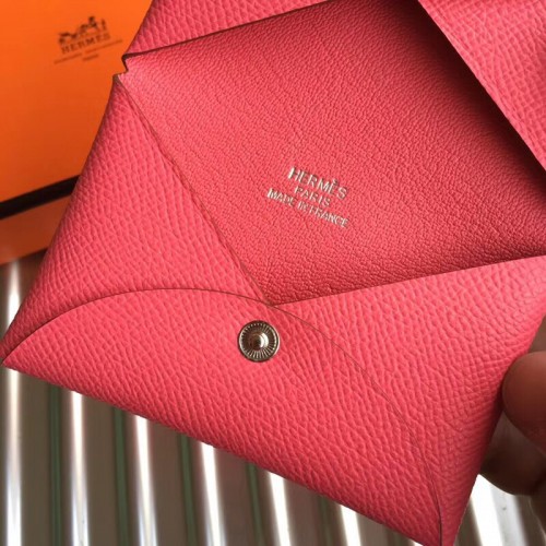 Hermes Calvi Card Holder In Rose Azalee Epsom Leather