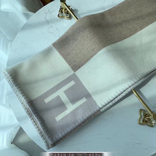 Hermes Ecru Gris Avalon Vibration Throw Blanket