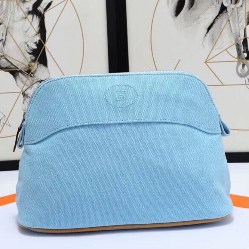 Hermes Medium Bolide Travel Case In Blue Lin Cotton