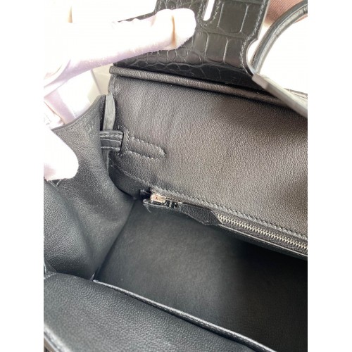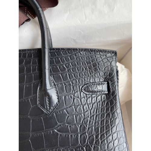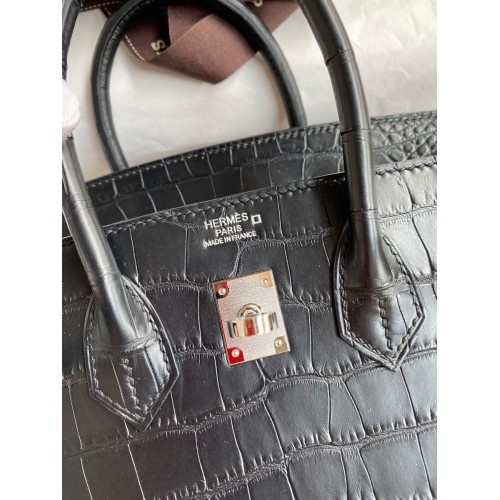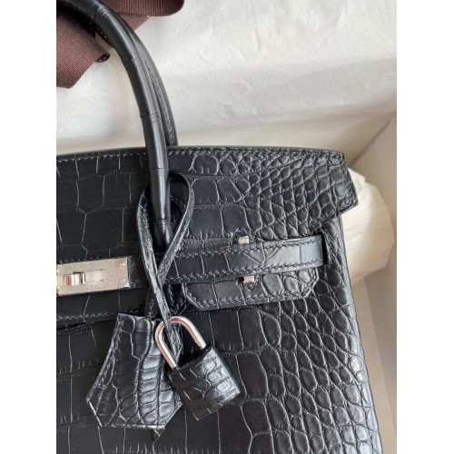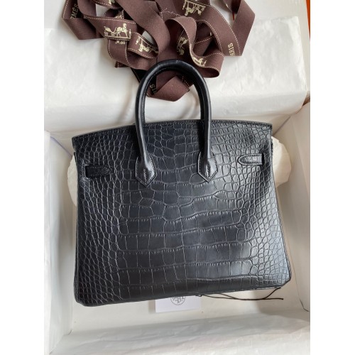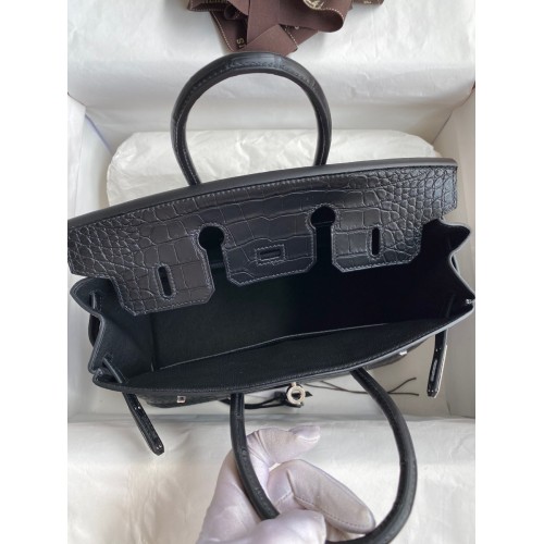 Hermes Birkin 25 Bag In Black Matte Alligator Crocodile Skin