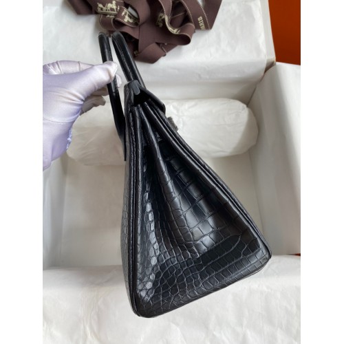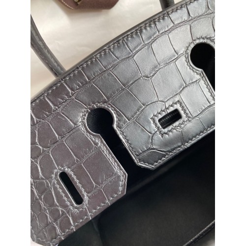 Hermes Birkin 25 Bag In Dark Grey Matte Alligator Crocodile Skin