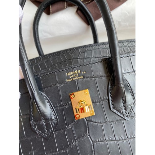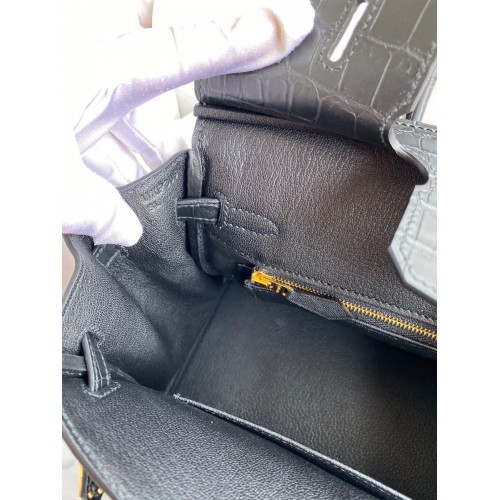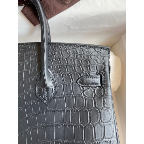 Hermes Birkin 25 Handmade Bag In Black Crocodile Niloticus Matte Skin