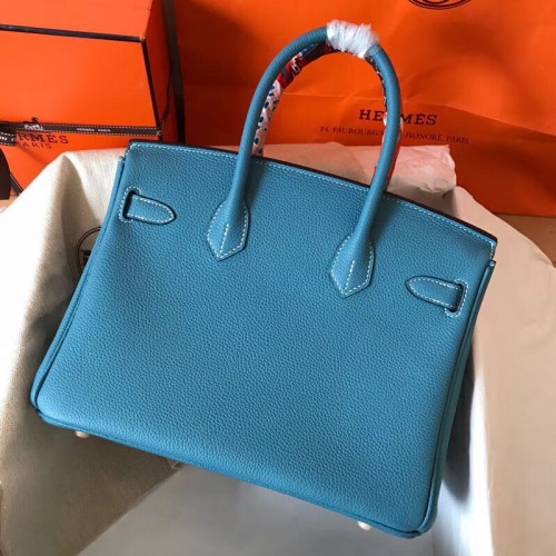 Hermes Birkin 30 Handmade Bag In Blue Atoll Clemence Leather