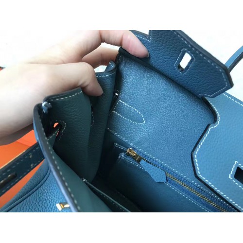 Hermes Birkin 30 Handmade Bag In Blue Jean Clemence Leather