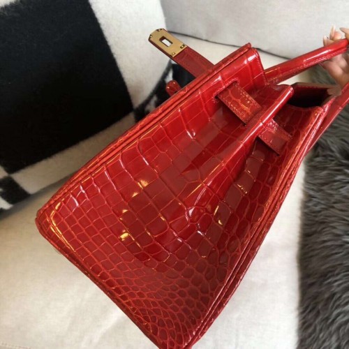 Hermes Birkin 30 Handmade Bag In Red Crocodile Niloticus Shiny