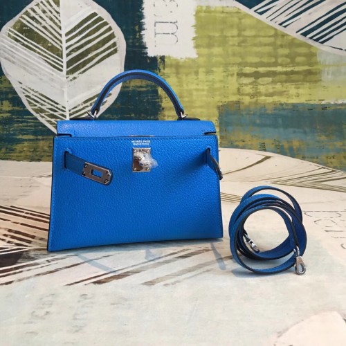 Hermes Kelly Mini II Handmade Bag In Blue Chevre Leather