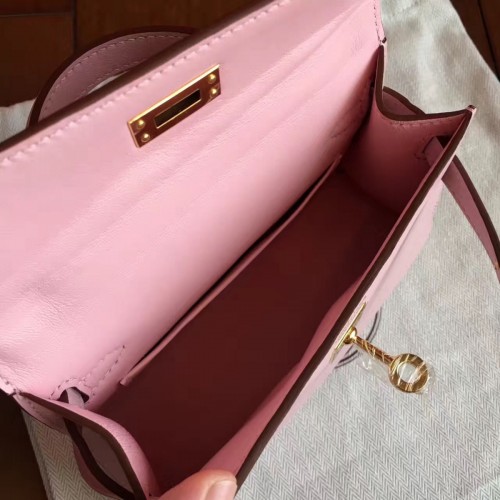 Hermes Kelly Mini II Handmade Bag In Rose Dragee Swift Calfskin