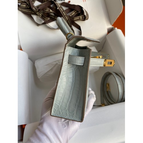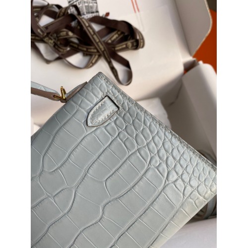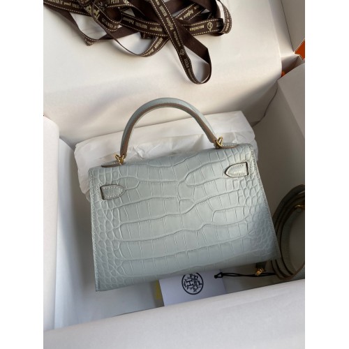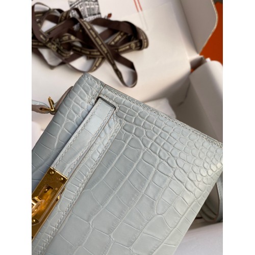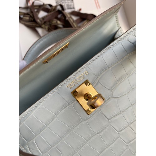 Hermes Kelly Mini II Sellier Handmade Bag In Blue Glacier Matte Alligator Leather