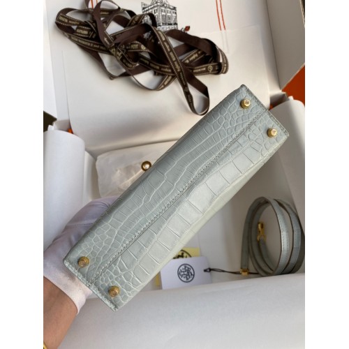 Hermes Kelly Mini II Sellier Handmade Bag In Grey Matte Alligator Leather