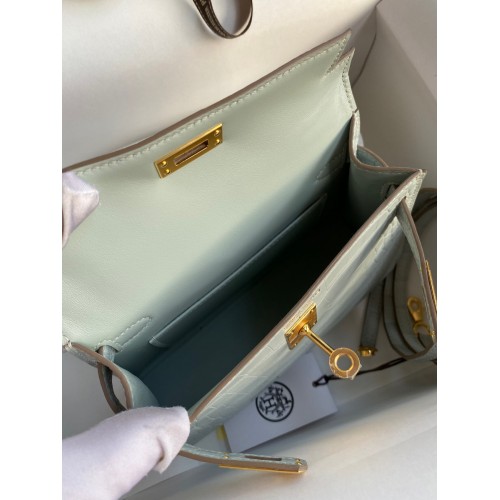 Hermes Kelly Mini II Sellier Handmade Bag In Vert D'eau Matte Alligator Leather