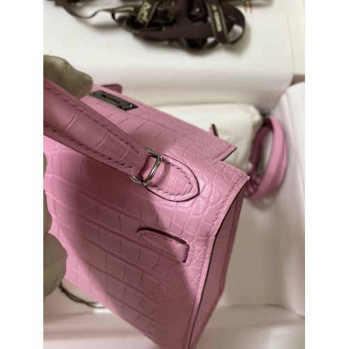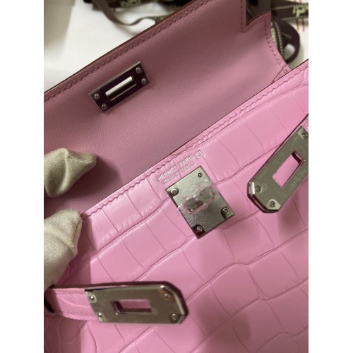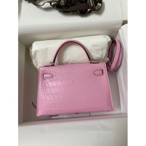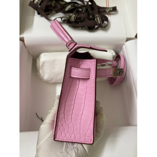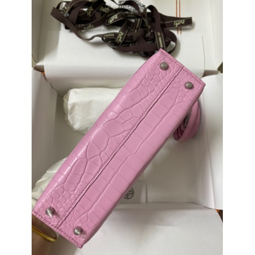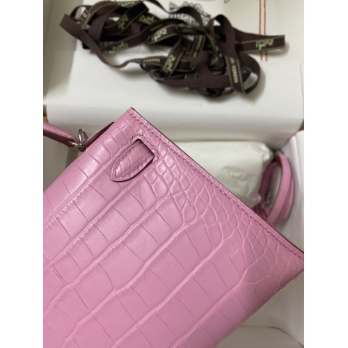 Hermes Kelly Mini II Sellier Handmade Bag In Rose Extreme Matte Alligator Leather