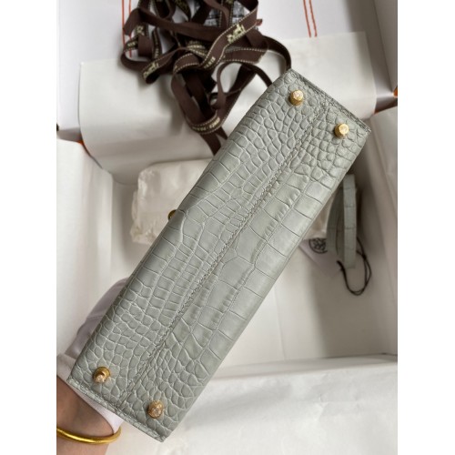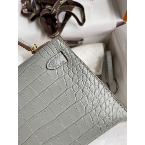 Hermes Kelly Mini II Sellier Handmade Bag In Grey Matte Alligator Leather