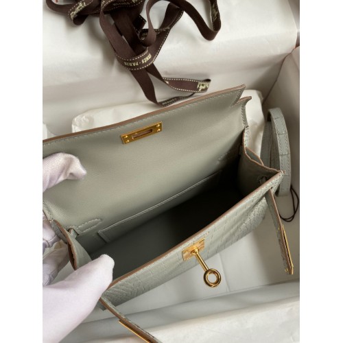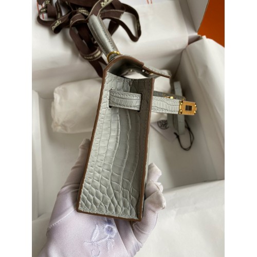 Hermes Kelly Mini II Sellier Handmade Bag In Pearl Grey Matte Alligator Leather