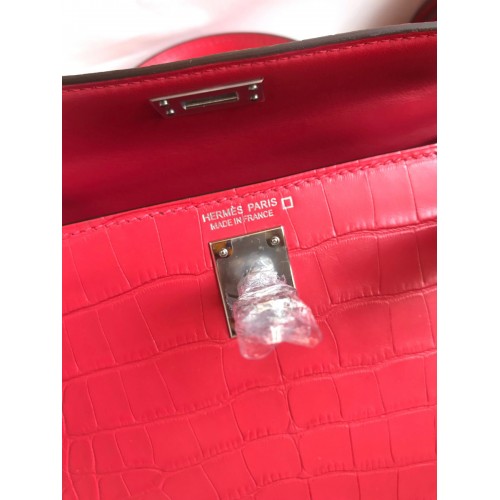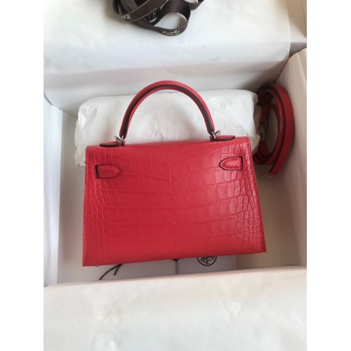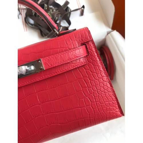Hermes Kelly Mini II Sellier Handmade Bag In Rose Extreme Matte Alligator Leather