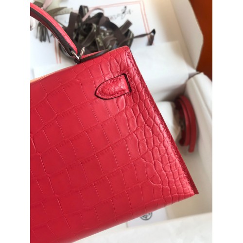 Hermes Kelly Mini II Sellier Handmade Bag In Grey Matte Alligator Leather