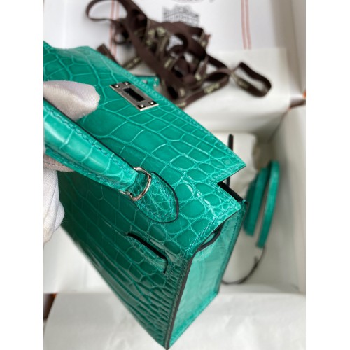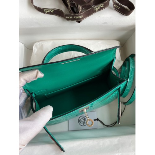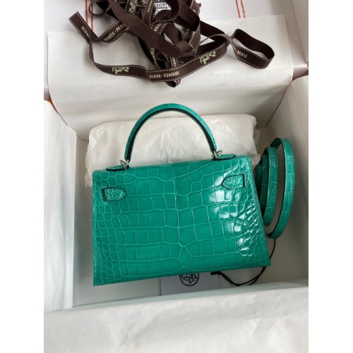 Hermes Kelly Mini II Sellier Handmade Bag In Malachite Shiny Alligator Leather