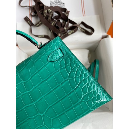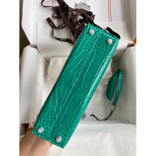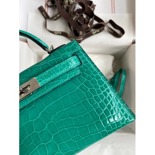 Hermes Kelly Mini II Sellier Handmade Bag In Vert Jude Shiny Alligator Leather