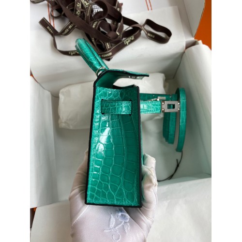 Hermes Kelly Mini II Sellier Handmade Bag In Vert D'eau Matte Alligator Leather