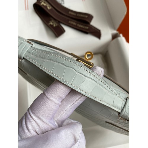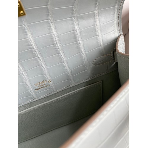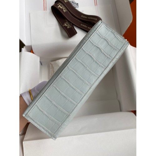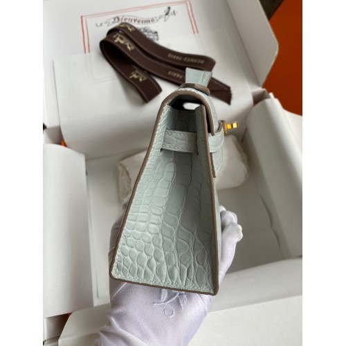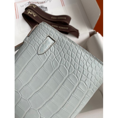 Hermes Kelly Pochette Handmade Bag In Pearl Grey Matte Alligator Leather