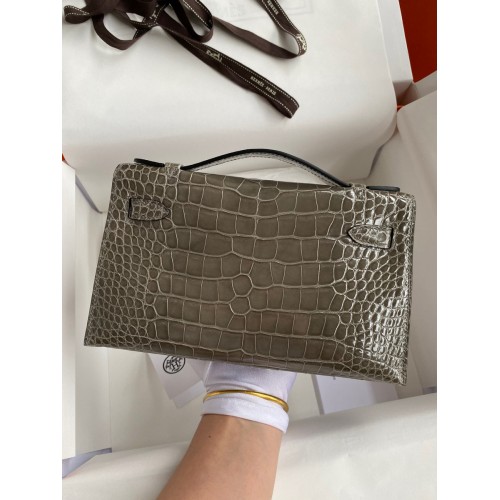 Hermes Kelly Pochette Handmade Bag In Colvert Shiny Alligator Leather