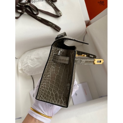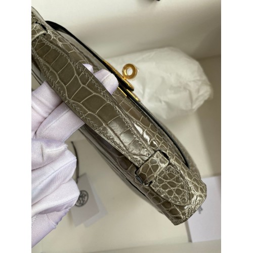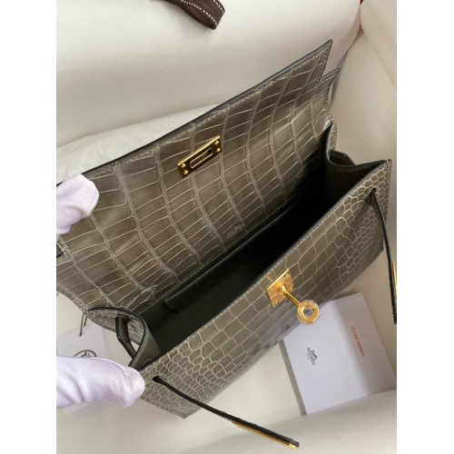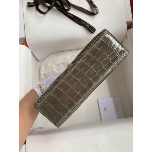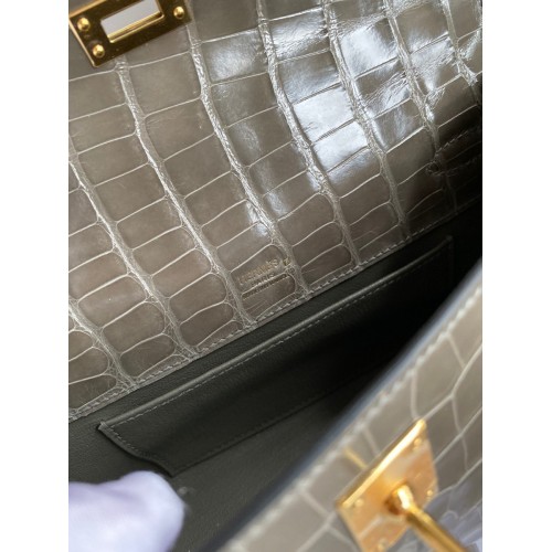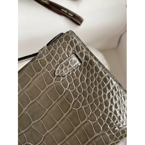 Hermes Kelly Pochette Handmade Bag In Taupe Shiny Alligator Leather