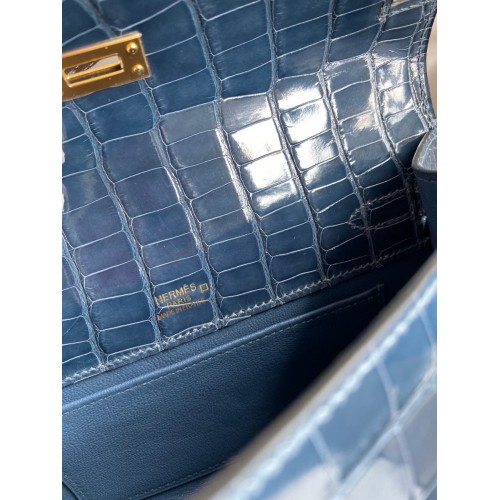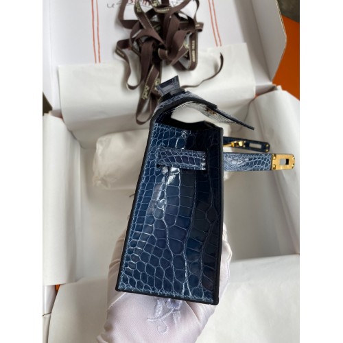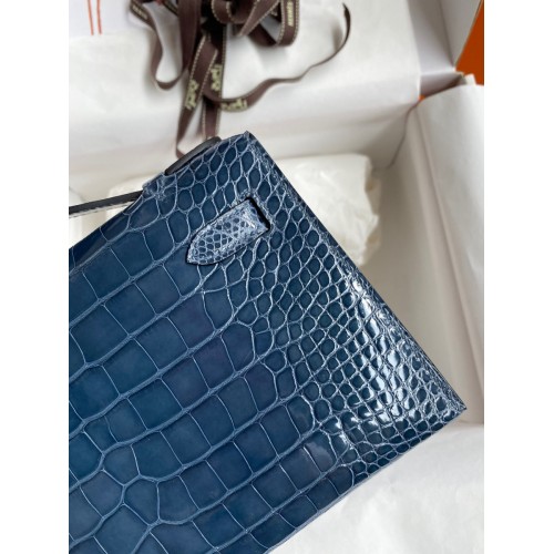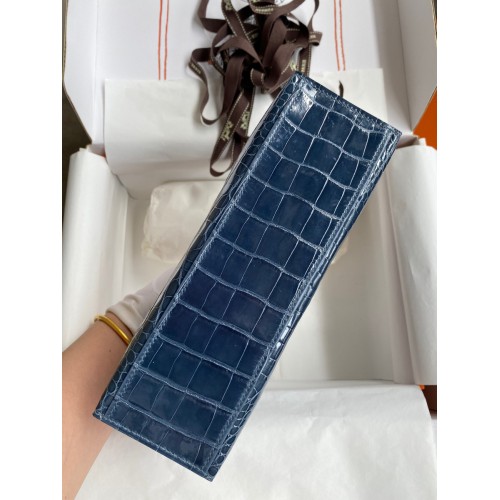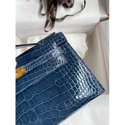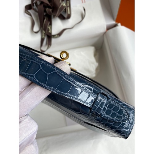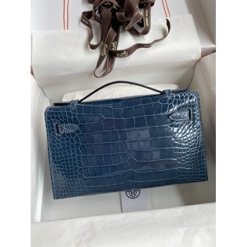 Hermes Kelly Pochette Handmade Bag In Colvert Shiny Alligator Leather