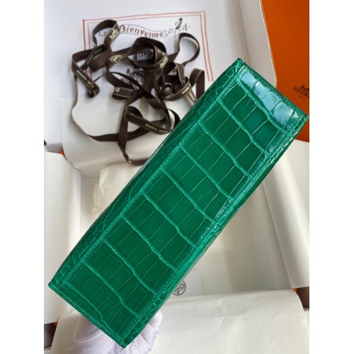 Hermes Kelly Pochette Handmade Bag In Vert Bosphore Shiny Alligator Leather