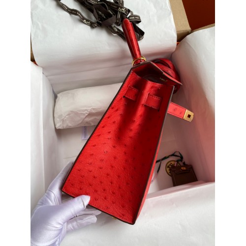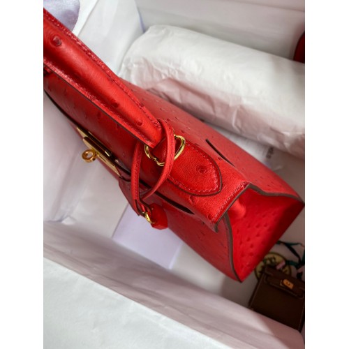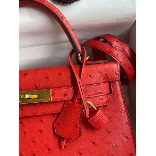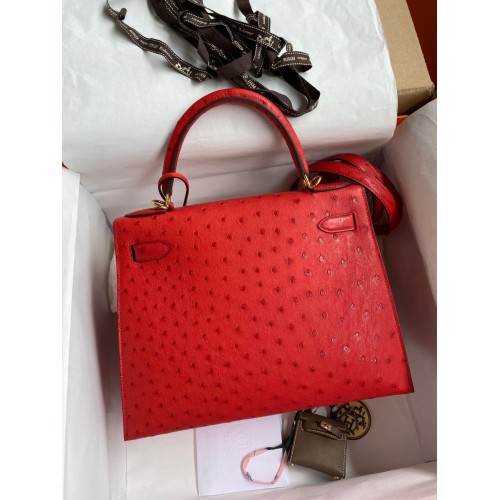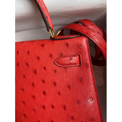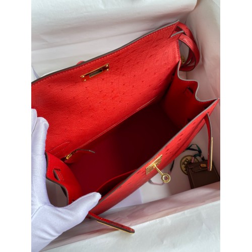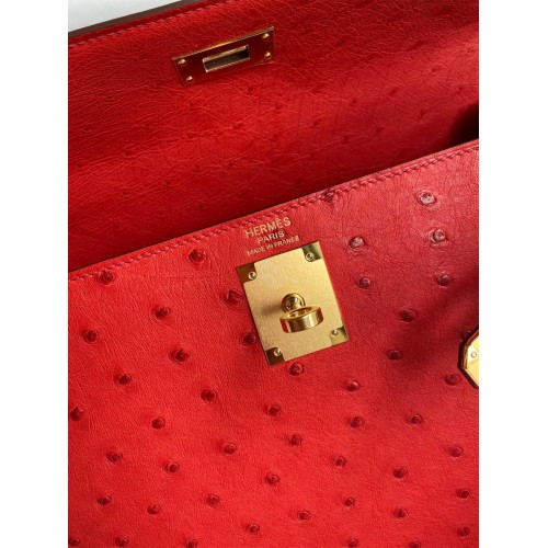Hermes Kelly Sellier 28 Handmade Bag In Red Ostrich Leather