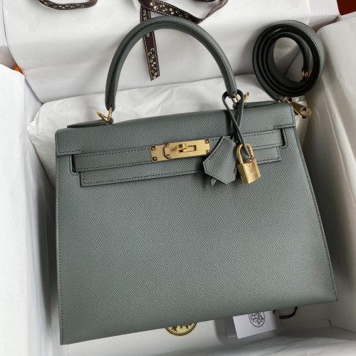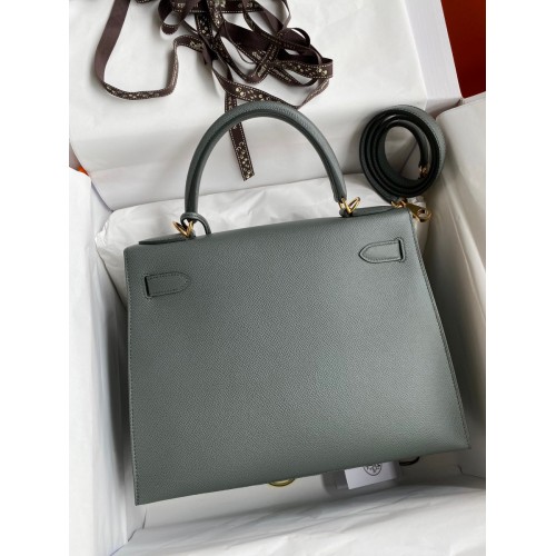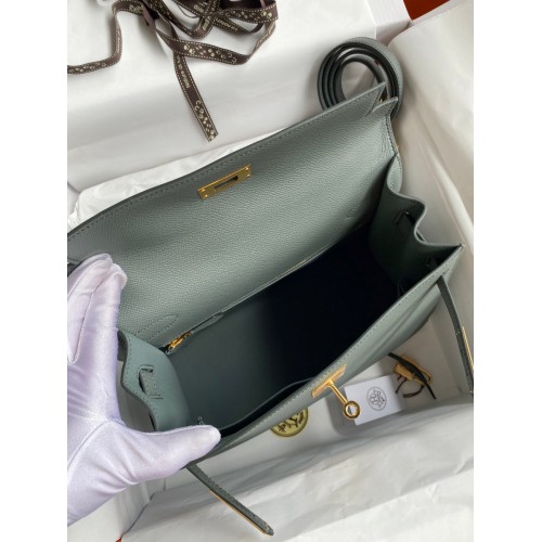 Hermes Kelly Sellier 28 Handmade Bag In Vert Amande Epsom Calfskin