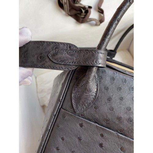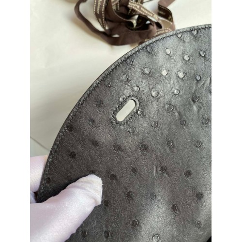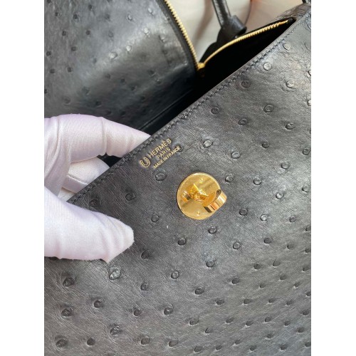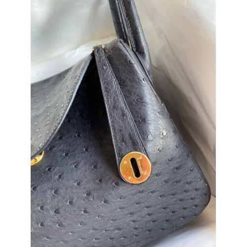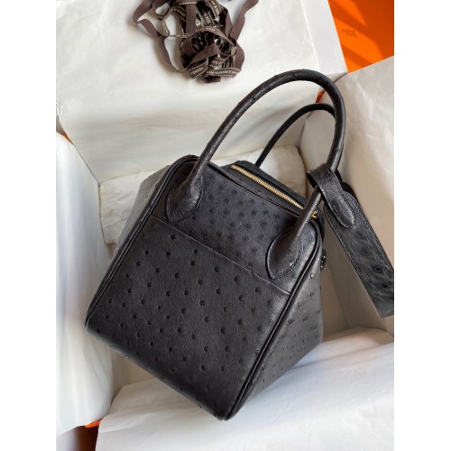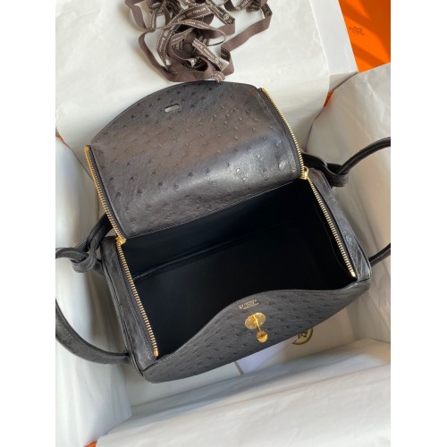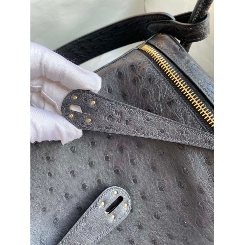 Hermes Lindy 30 Handmade Bag In Black Ostrich Leather