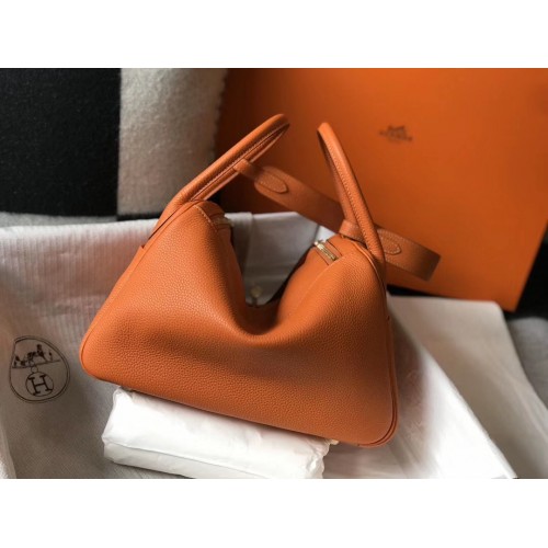 Hermes Lindy 30cm Bag In Orange Clemence Leather GHW