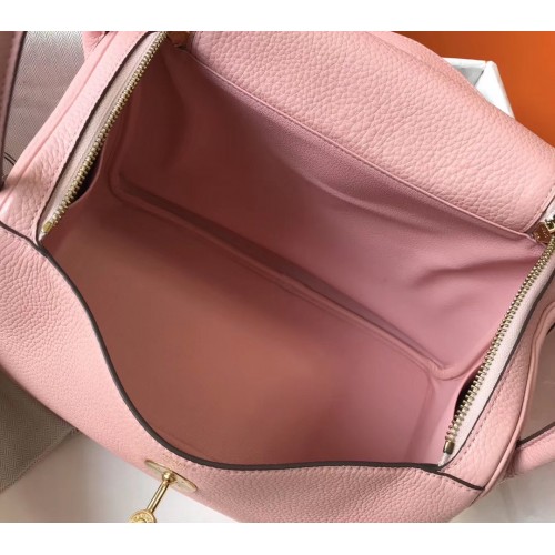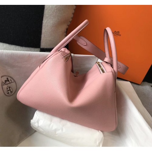 Hermes Lindy 30cm Bag In Pink Clemence Leather GHW