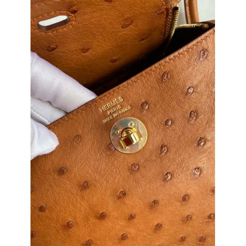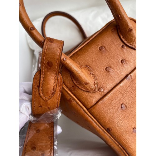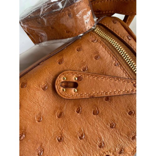 - 100% Ostrich leather- Hand-stitching- Double rolled handles with shoulder strap with 56 cm drop- T..