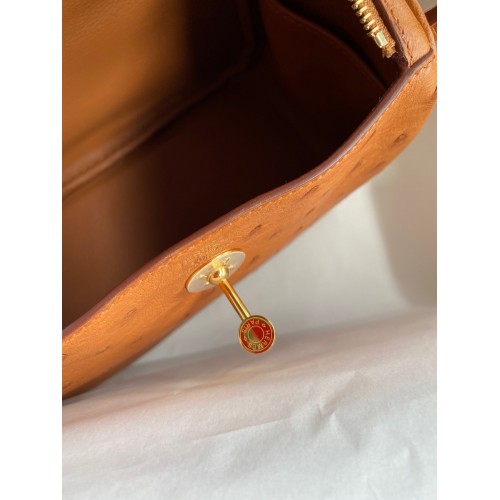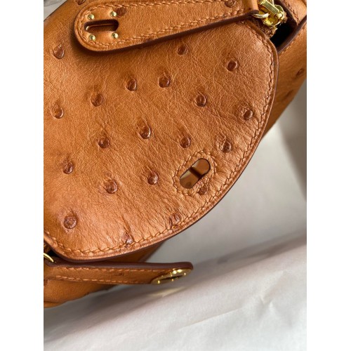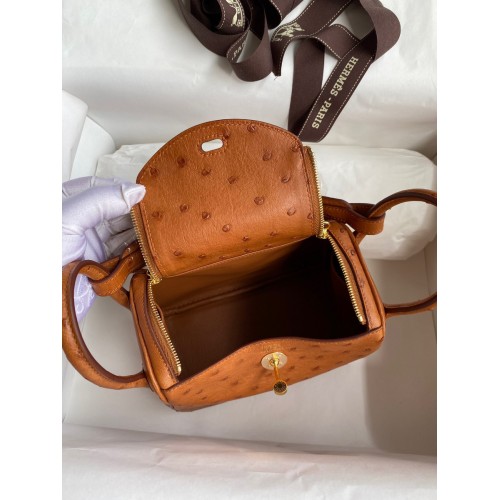 Hermes Mini Lindy Handmade Bag In Gold Ostrich Leather