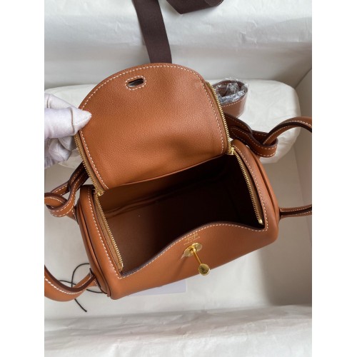 Hermes Mini Lindy Handmade Bag In Gold Swift Leather