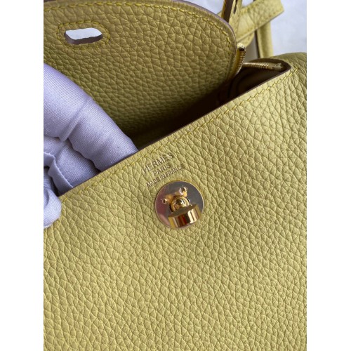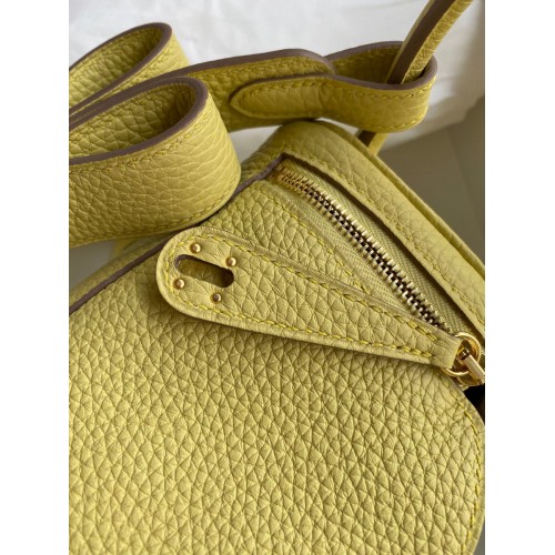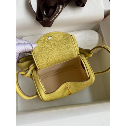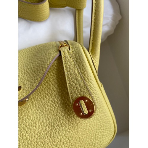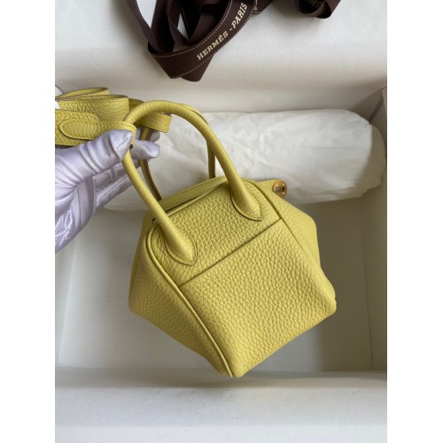 Hermes Mini Lindy Handmade Bag In Jaune Poussin Clemence Leather