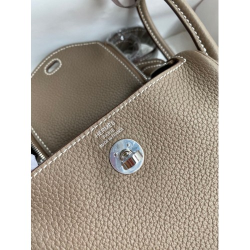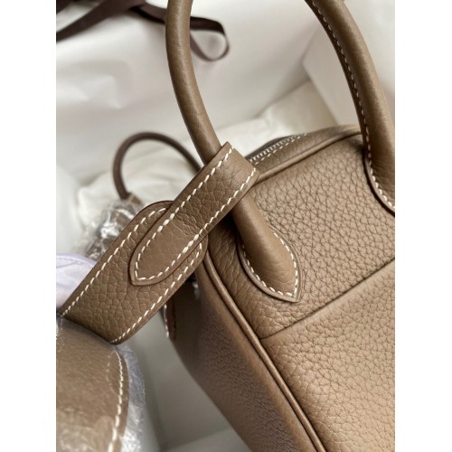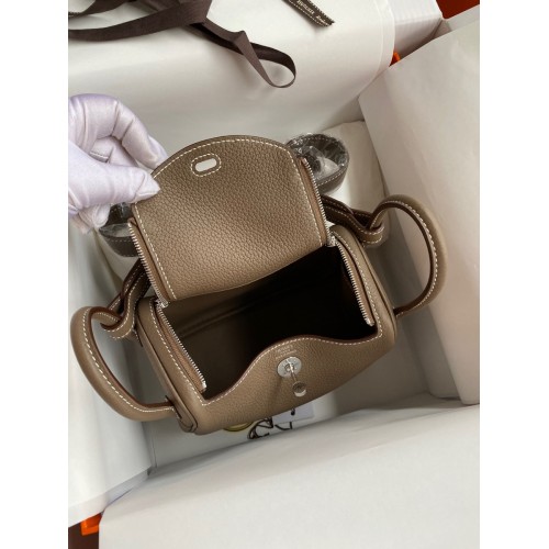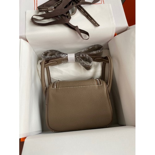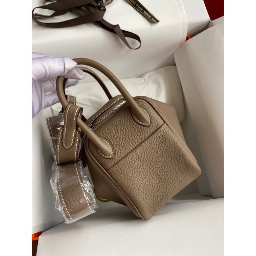 Hermes Mini Lindy Handmade Bag In Taupe Clemence Leather