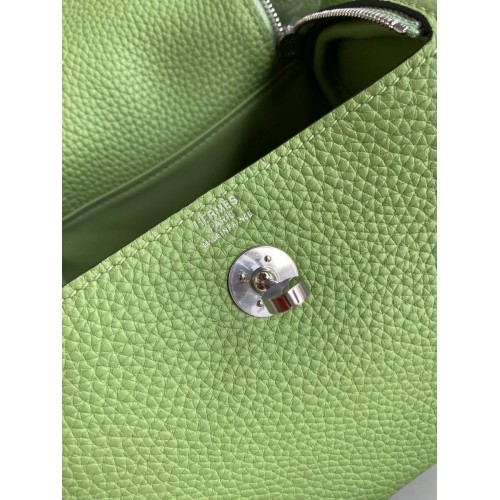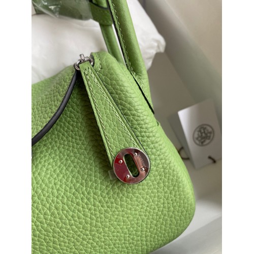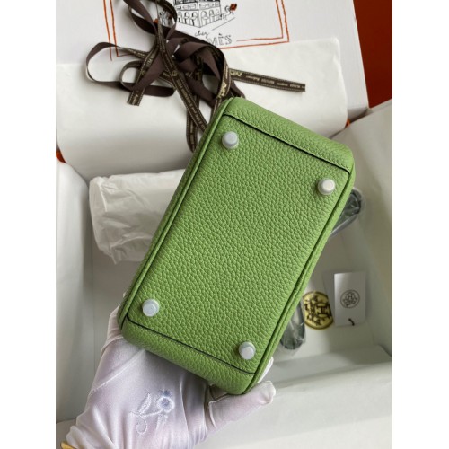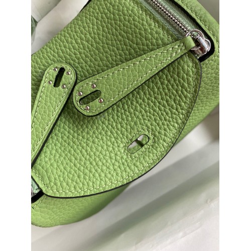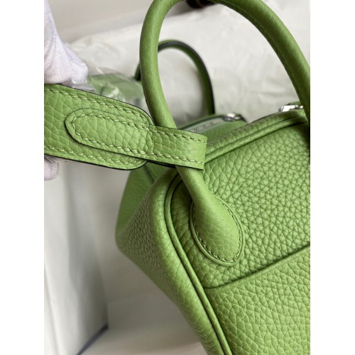 Hermes Mini Lindy Handmade Bag In Vert Amande Clemence Leather