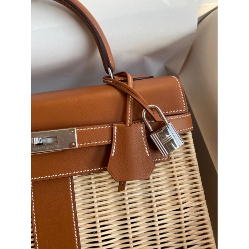 Hermes Picnic Kelly 28cm Bag in Wicker with Barenia Leather