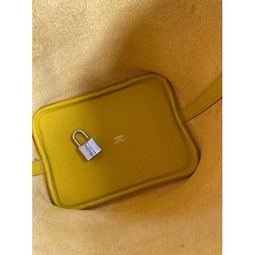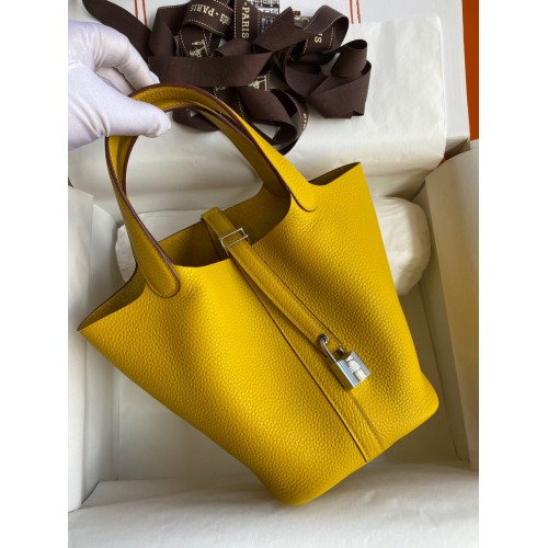 Hermes Picotin Lock 18 Handmade Bag in Jaune Ambre Clemence Leather