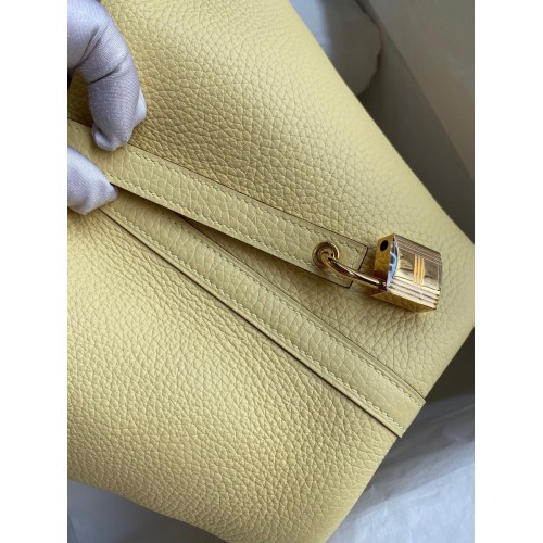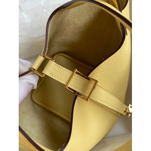 Hermes Picotin Lock 18 Handmade Bag in Jaune Poussin Clemence Leather
