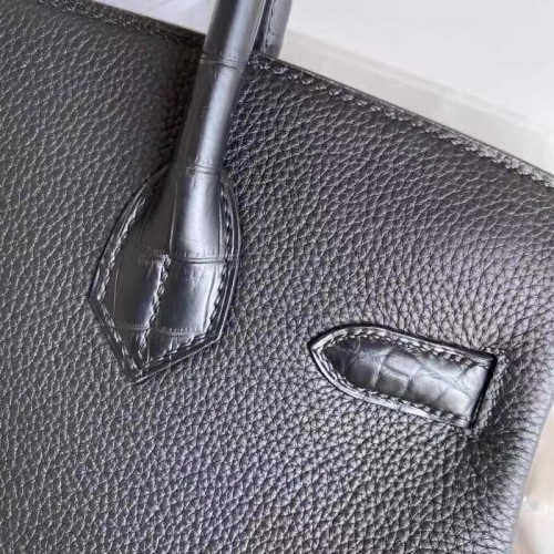 Hermes Birkin 30 Handmade Bag In Black Crocodile Niloticus Matte Skin