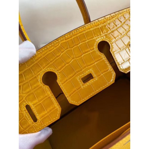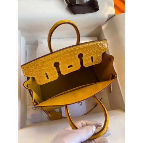 Hermes Birkin 25 Handmade Bag In Yellow Crocodile Niloticus Shiny Skin