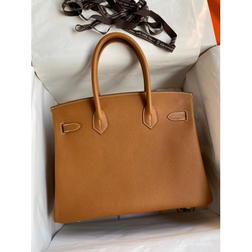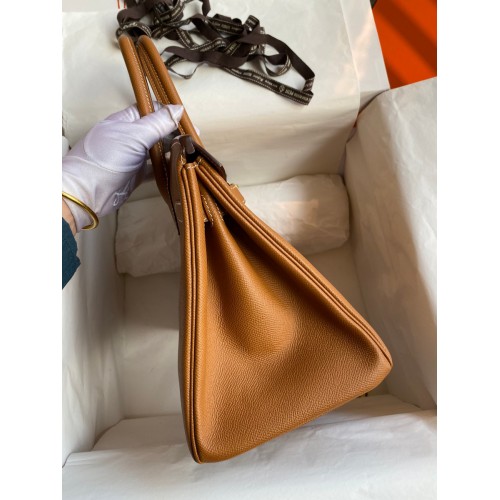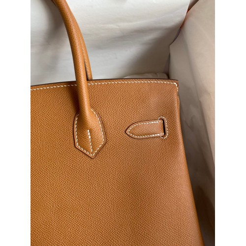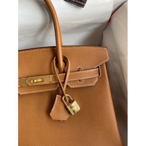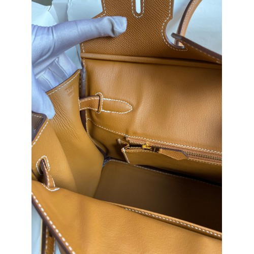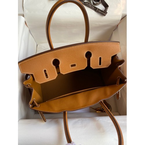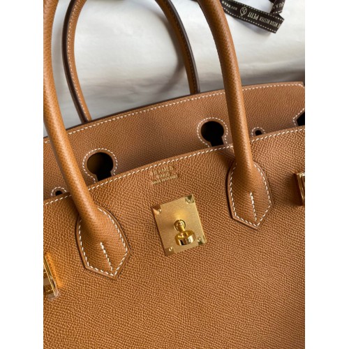 Hermes Birkin 30 Retourne Handmade Bag In Gold Epsom Calfskin