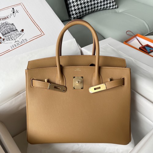Hermes Birkin 30 Retourne Handmade Bag In Biscuit Swift Leather