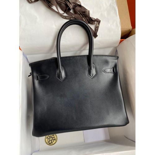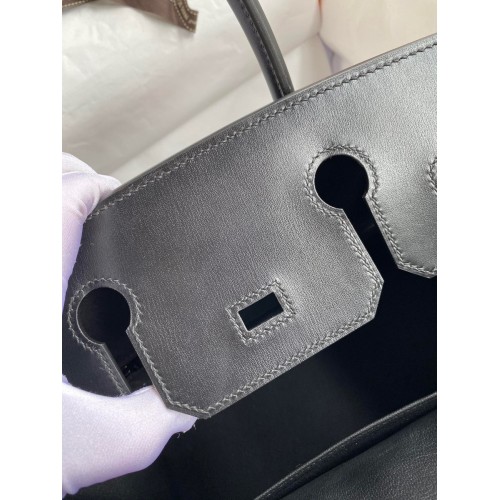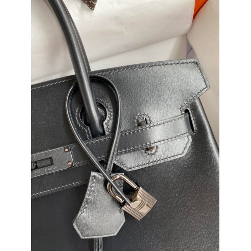 Hermes Birkin 30 Retourne Handmade Bag In Black Box Calfskin