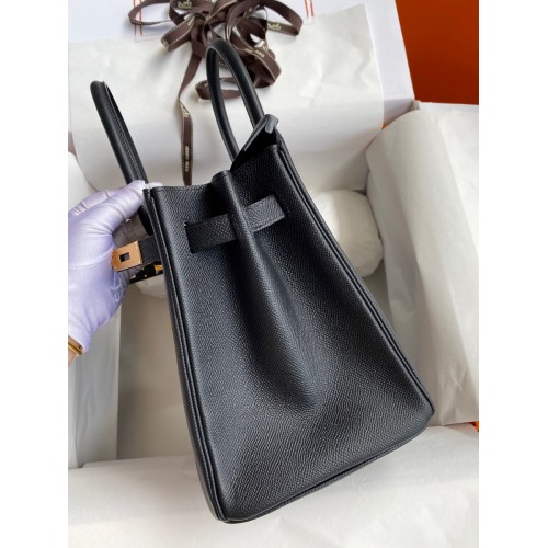 Hermes Birkin 30 Retourne Handmade Bag In Black Epsom Calfskin
