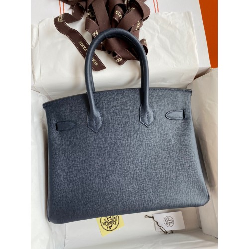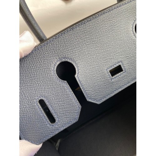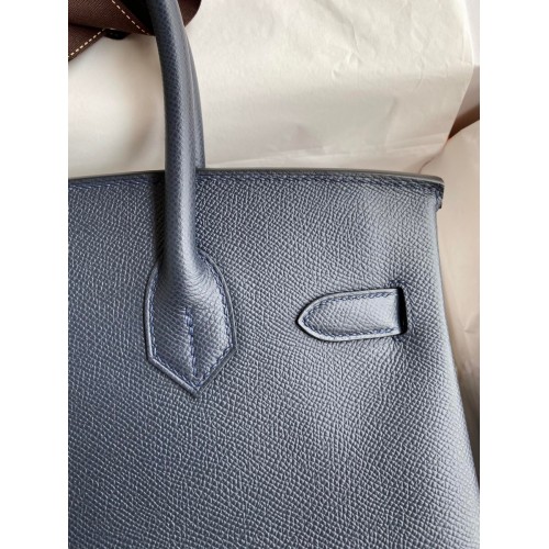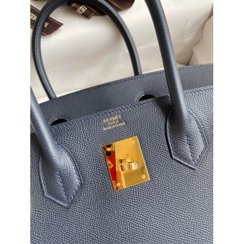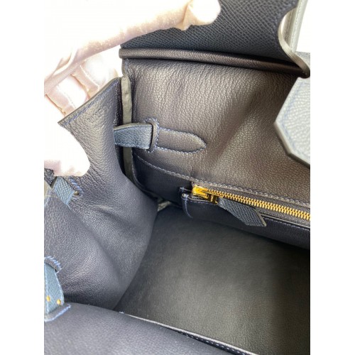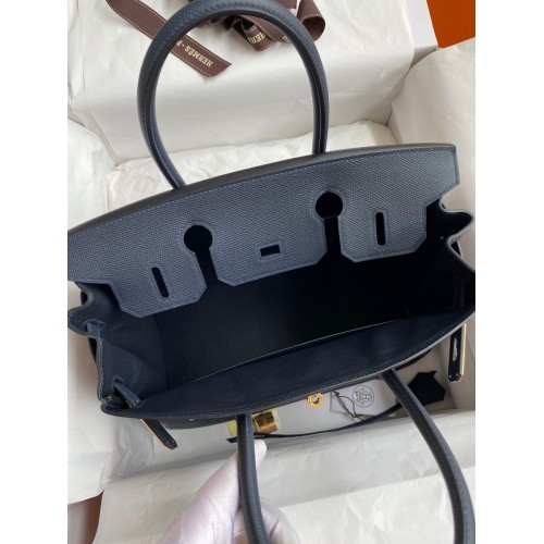 Hermes Birkin 30 Retourne Handmade Bag In Blue Nuit Epsom Calfskin