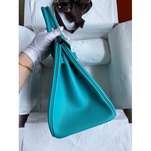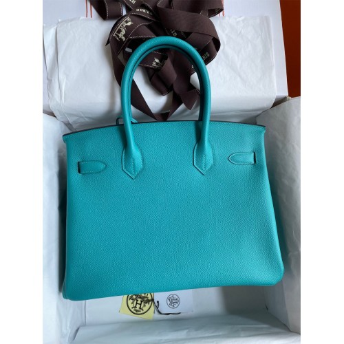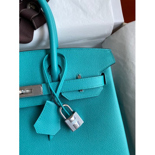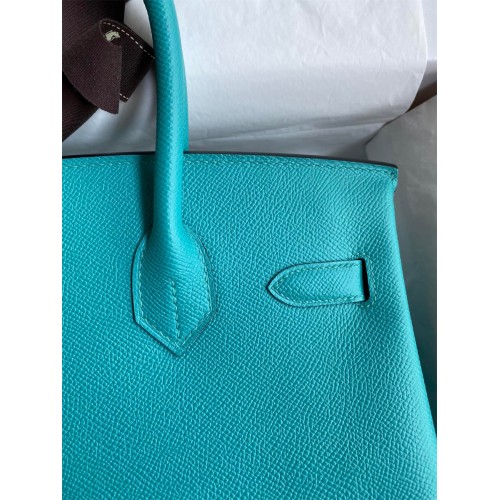 Hermes Birkin 30 Retourne Handmade Bag In Blue Paon Epsom Calfskin