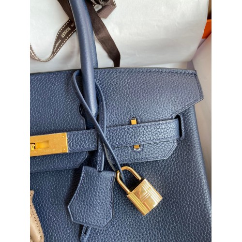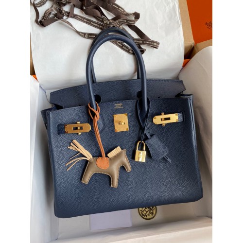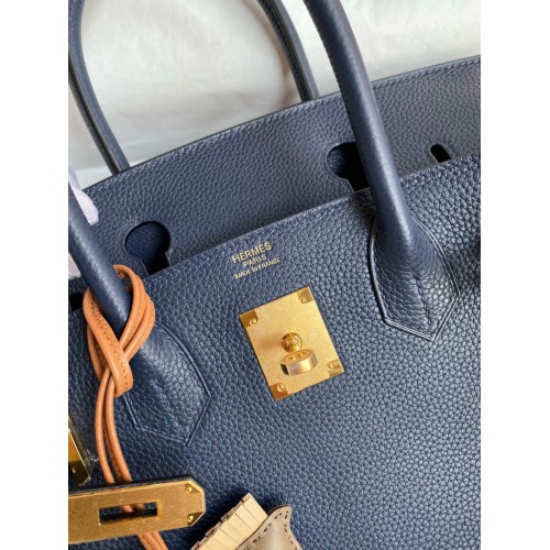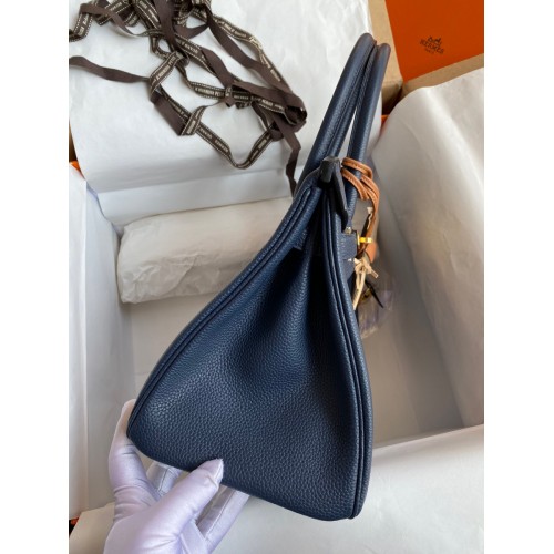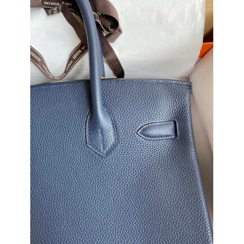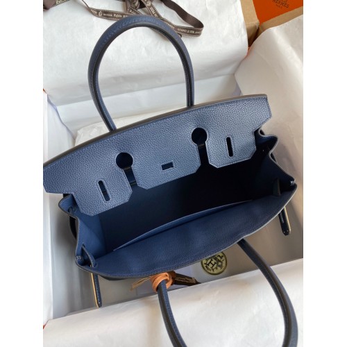 Hermes Birkin 30 Retourne Handmade Bag In Blue Saphir Clemence Leather